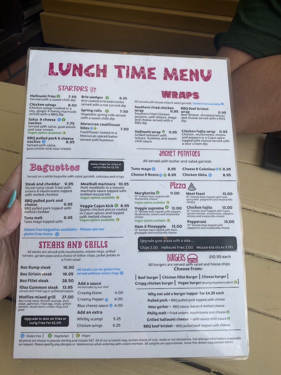 - Signature Dishes: V burger, steak & ale pie, fish and chips